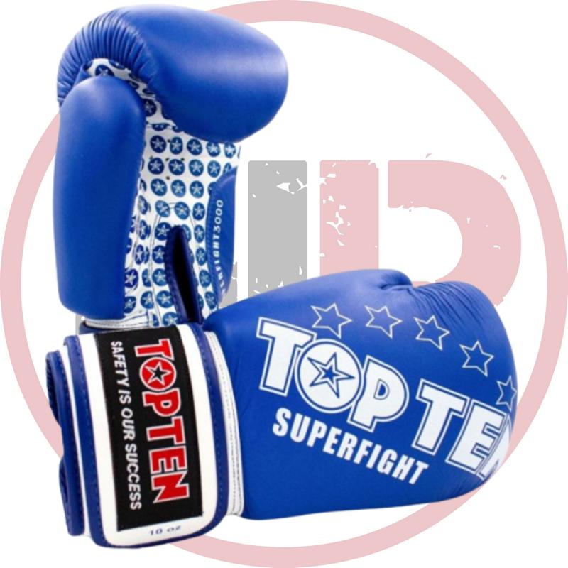 Перчатки для спарринга TOP TEN SUPERFIGHT-3000  предназначены для лучших тренировок! Данная модель произведена с учетом профессиональных требований и международных стандартов. Материал: натуральная кожа высшего качества. Вкладыш изготовлен из предварительно сформированного пенополиуретана эксклюзивной марки Bayfill. Модель фиксируется при помощи манжеты-липучки. Рекомендованы и протестированы Федерацией Кикбоксинга России. Много лет данная модель была основной для тренировок сборной России по боксу.