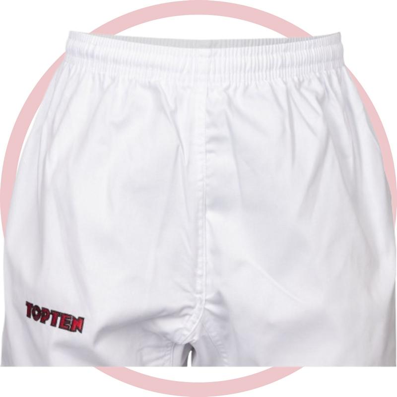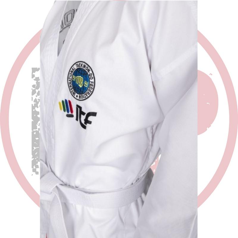Кимоно для тхэквондо TOP TEN "KYONG" ТАЕКВОНДО ITF подходит для тренировок и выступления на соревнованиях даже международного класса, поскольку аккредитовано ITF. Идеальный вариант для детей! Легкий полиэстер создает комфорт, "дышащий" и быстро сохнущий материал, ткань не садится, даже после многократных стирок кимоно не теряет яркость цвета (не желтеет), ткань гипоаллергенна, куртка от кимоно оснащена "липучкой" для лучшей фиксации, использованы качественные вышивки.