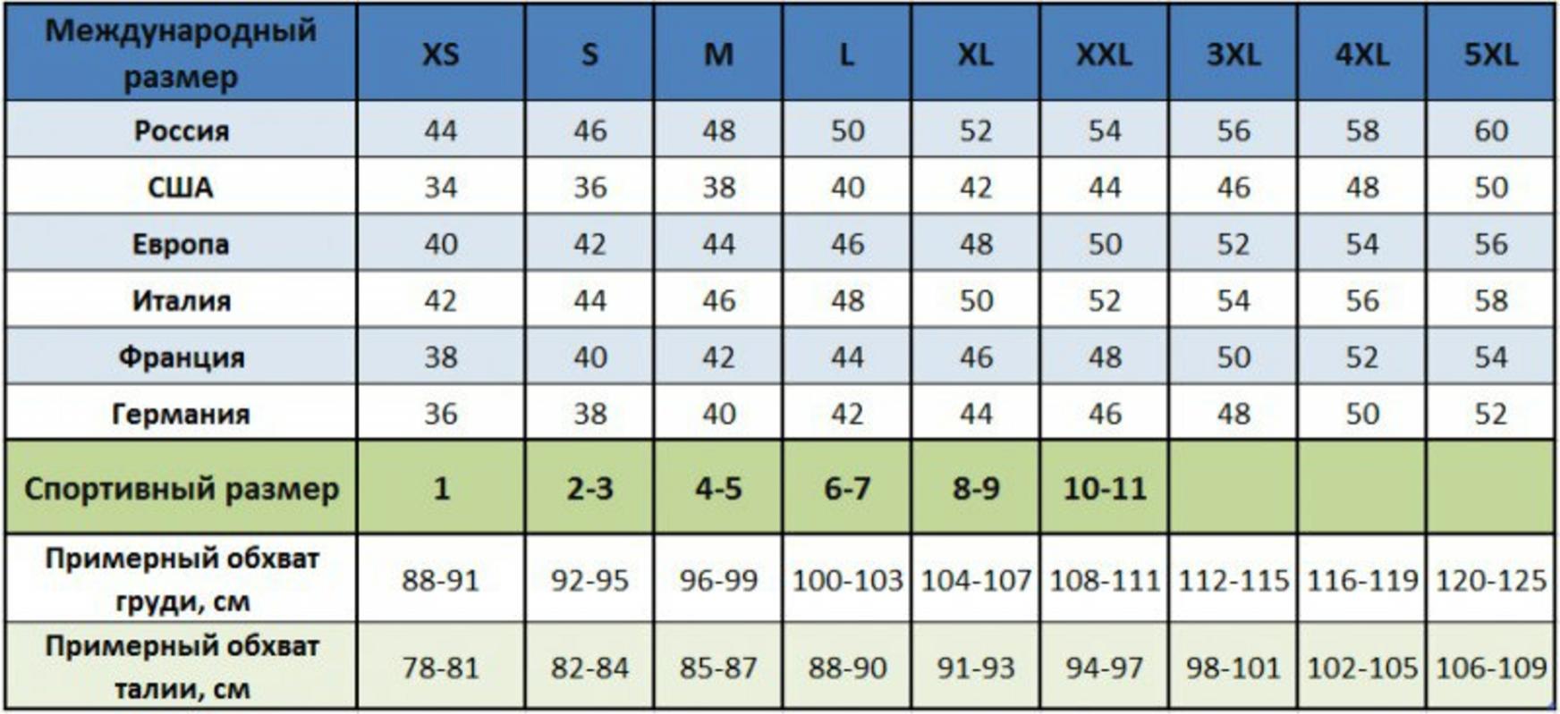 • Таблица размеров