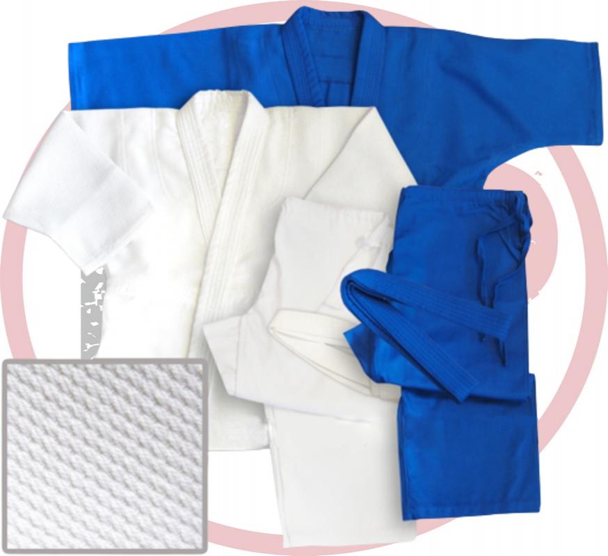 В соответствии с требованиями вида, материал дзюдоги в разных частях обладает разными характеристиками: верхняя часть куртки изготовлена из особо прочной «рифленой» ткани плотностью 560-640 г/м2, нижняя часть куртки имеет меньшую плотность - 440-540 г/м2.