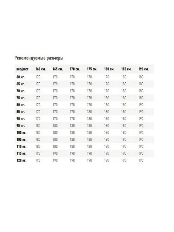 • Таблица размеров