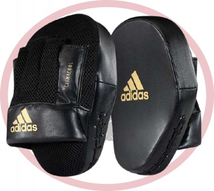 Тренерские изогнутые короткие боксерские лапы. Материал: полиуретан PU4G. Усиленные лапы с шариком внутри. Технология Climacool для лучшей вентиляции рук.