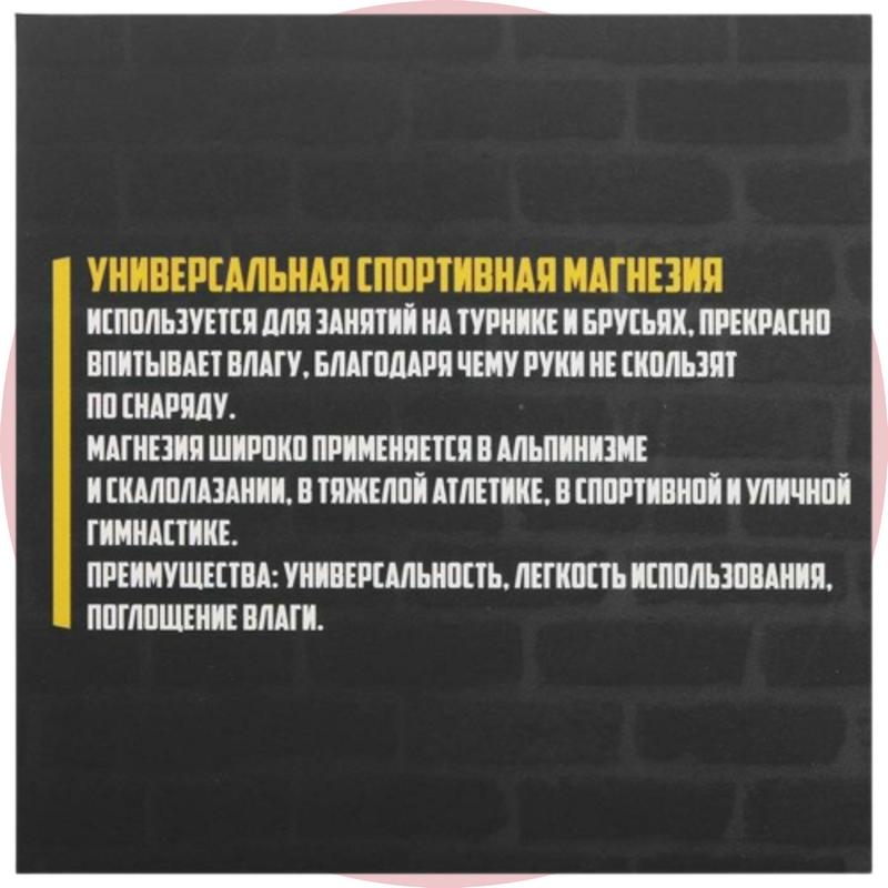 • Профессиональная магнезия для гимнастики и других видов спорта.