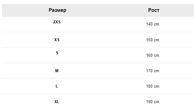 • Таблица размеров