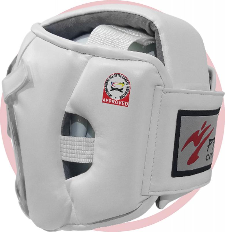Шлем КРИСТАЛЛ-11 одобрен Федерацией Всестилевого каратэ России и Международной федерацией Всестилевого каратэ (IASKF) Особо прочная защитная маска плотно прилегает к поверхности шлема и обеспечивает надежную защиту лица спортсмена, в то же время, сохраняя хороший обзор. Регулировка размера осуществляется широкой застежкой Velcro в затылочной части шлема. Внешняя поверхность - эластичная искусственная кожа. Внутренняя поверхность изготовлена из искусственной замши, которая хорошо впитывает влагу и препятствует вращению шлема на голове. Защитный слой – комбинация полимерных материалов различной плотности общей толщиной 2 см. Широкие застежки Velcro позволяют быстро снять или закрепить маску на шлеме. В затылочной части слева нанесена эмблема Федерации Всестилевого каратэ