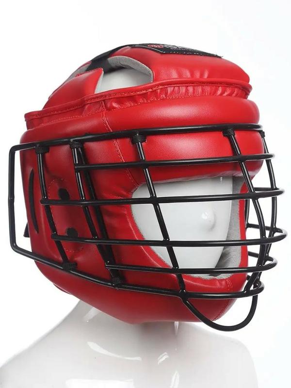 • Маска, выполненная из стальных прутьев, надежно уберегает от удара в лицо, виски и уши, минимизируя возможность травмирования на тренировке.