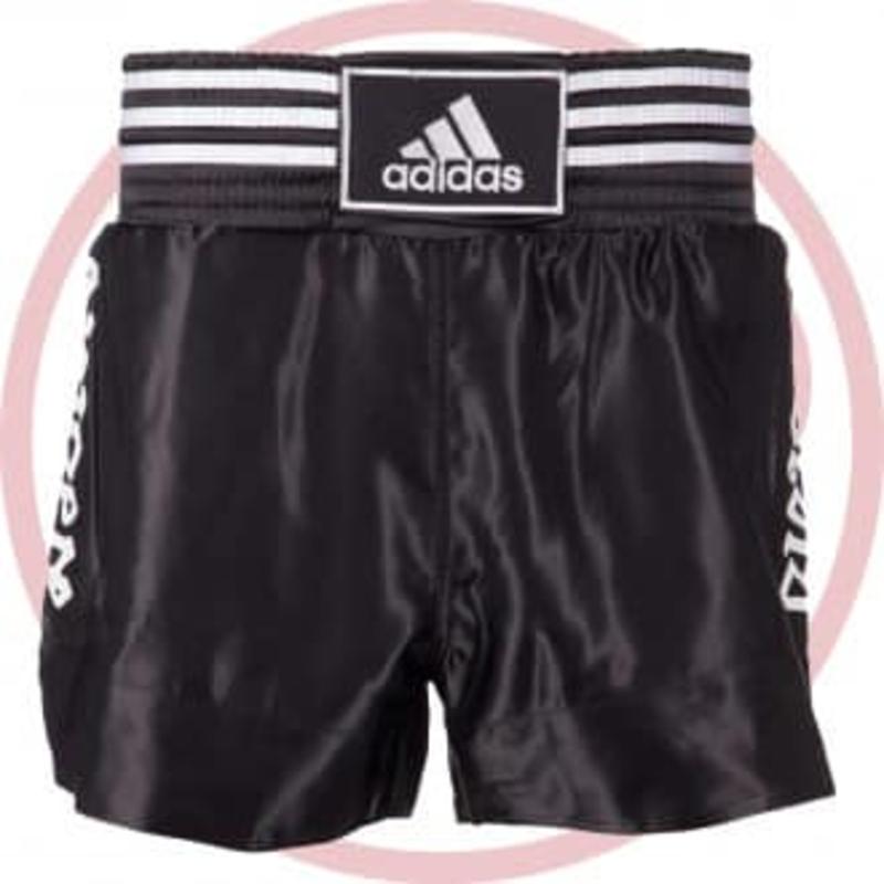 Шорты для тайского бокса adidas. Легкая атласная ткань, 160 г/м2 дает полную свободу движения. Большой эластичный пояс-бандаж для оптимальной фиксации и комфорта. Широкая резинка на талии Логотип adidas по центру шорт.