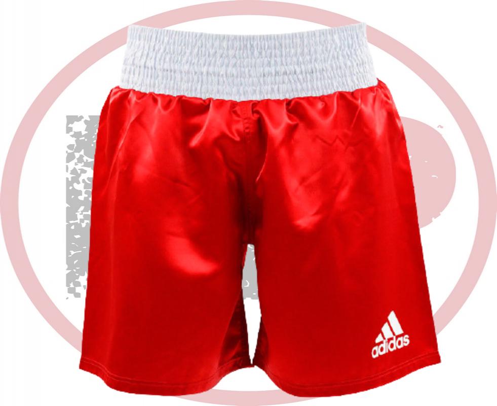 Шорты для профессионального бокса adidas Multi Boxing Shorts красные. Легкая атласная ткань, +/-160 г/м2 дает полную свободу передвижения. Большой эластичный пояс-бандаж плюс затягивающий шнурок, для оптимальной фиксации и комфорта.