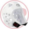 Шлем имеет анатомическую форму, очень эргономичный и обеспечивает максимальный комфорт спортсмену. Шлем не давит на шею и не ограничивает обзор спортсмену. Сама защита легкая, что позволяет не стеснять движений бойца. Несмотря на свою легкость, шлем отлично справляется со своей задачей – защищает затылок, уши, скулы и щеки. По всей поверхности шлема сделаны сквозные отверстия, которые значительно уменьшают давление воздуха в момент нанесения удара. Фиксируется липучкой под подбородком.