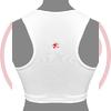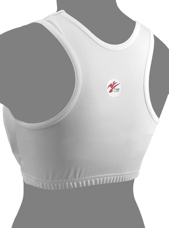 Защита на грудь женская Щ56Э служит для защиты грудных желез во время поединков по различным видам единоборств. Защита груди выполнена в виде майки-топа, который надевается через голову. Нагрудник имеет два раздельных защитных вкладыша, для удобства ухода за изделием вкладыши легко извлекаются из своих карманов. Область солнечного сплетения открыта. Конструкция нагрудника обеспечивает надежную защиту от неакцентированных ударов и не стесняет движения. Материал топа - эластичный трикотаж Материал защитных вкладышей - вспененный полимер EVA