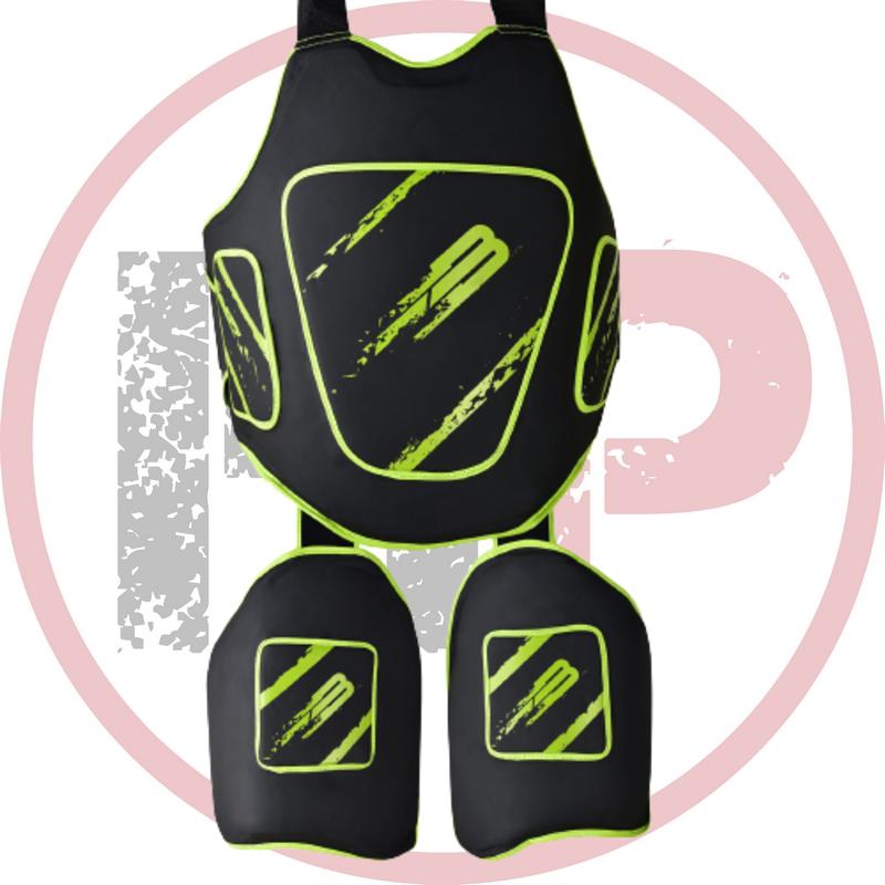 • Состоит из двух частей: защитный щит (жилет) на корпус и щиты на бедра.