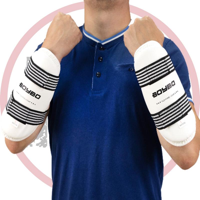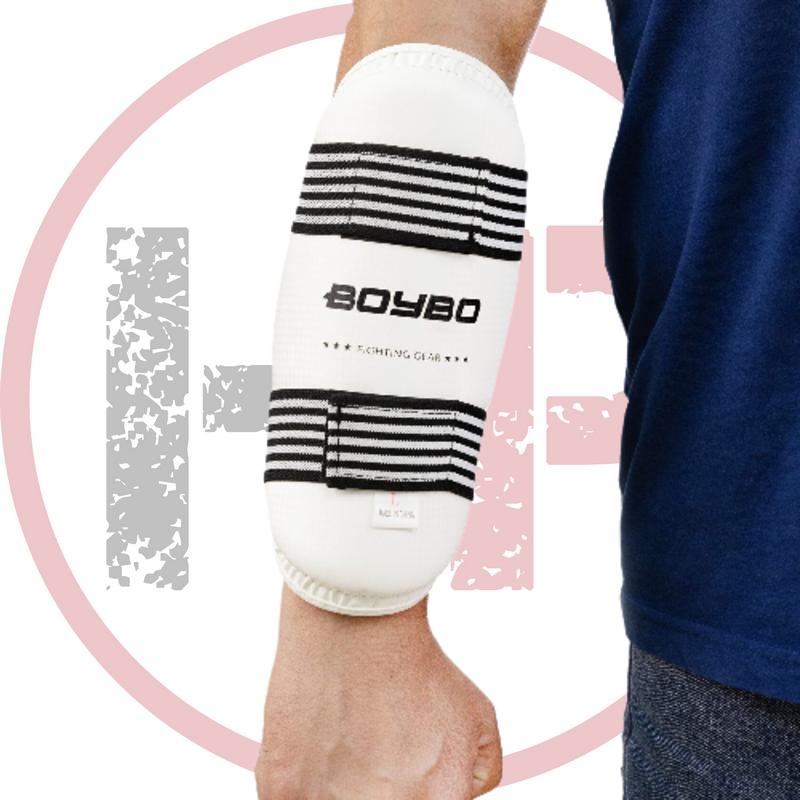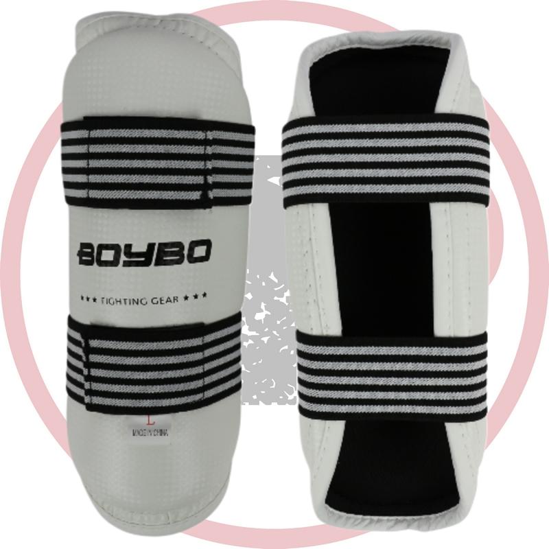 Защита предплечья для тхэквондо Boybo - с наружным износостойким покрытием из синтетической кожи и амортизирующим пенным наполнением EVA. Фиксируется на руках с помощью двух эластичных ремешков на "липучке".